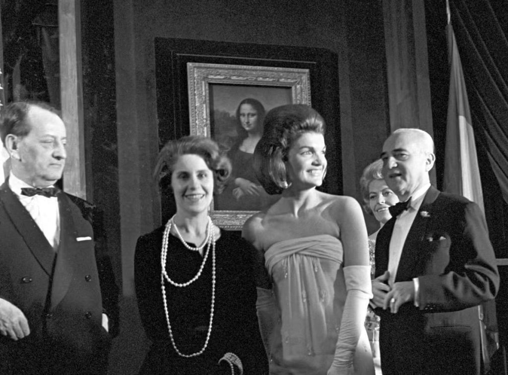 في حدث نادر، غادرت الموناليزا فرنسا عندما طلبت السيدة الأولى الأمريكية جاكي كينيدي عرضها في الولايات المتحدة. منح الرئيس الفرنسي شارل ديغول الإذن، مما أدى إلى عرض اللوحة في المعرض الوطني للفنون في واشنطن العاصمة، ولاحقاً في متحف المتروبوليتان للفنون في مدينة نيويورك.